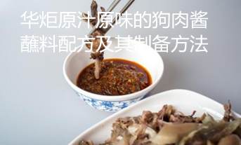 华炬新产品研究所技术咨询委员会科研人员现推荐一项一种原汁原味的狗肉酱蘸料配方及制备方法,该技术的有益效果是:本狗肉酱蘸料配方合理,制备方法简单易行,能够保持狗肉的原汁原味和营养价值,它不仅适用狗肉的火锅蘸料和熟狗肉蘸料,而且适用于一切熟食的蘸料和其它用品的蘸料,味道鲜美,色泽诱人,不肥不腻香味可口,现将该一种原汁原味的狗肉酱蘸料配方及制备方法及技术方案实施例介绍如下供研究交流参考:(311611 315619)