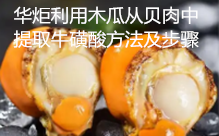 华炬新产品研究所技术咨询委员会科研人员现推荐一项一种利用木瓜从贝肉中提取牛磺酸方法及步骤,该技术利用木瓜及叶中的酶直接对贝肉进行酶解,因为是用植物的叶或果或根进行酶解,所以在食品安全方面无懈可击,该技术方法科学、合理、环保和节能,,所得到的产品安全、卫生。通过该技术而获得牛磺酸,纯度高,得率高,该技术有利于贝肉的应用开发,提升了贝肉的商业价值,也促进了海洋生物的进一步开发利用,现将该一种利用木瓜从贝肉中提取牛磺酸方法及步骤及技术方案及实施例介绍如下供研究交流参考:(341371 221485)