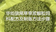 华炬科技新产品研究所技术咨询委员会科研人员现推荐一项一种狼尾草草浆颗粒饲料配方及制备方法步骤,该技术草浆颗粒饲料的制作工艺优化了加工环节,能快速固定鲜草的营养物质,所制备的草浆颗粒饲料,具有色泽鲜艳、气味新鲜、营养丰富的特点,从感观、采食效果和营养品质上均优于一般的草粉饲料。此外,还有以下的特点:1、同新鲜牧草的直接利用相比,草浆颗粒饲料具有适宜贮存、周年均衡供应的优点。牧草具有一定的生育周期,直接利用存在夏秋丰腴、过剩,冬春缺乏的缺点。草浆经过合理加工成的草浆颗粒饲料,同草粉饲料一样具有适宜贮存、周年均衡供应的优点。2、同现有的草粉饲料技术相比,草浆颗粒饲料技术具有制作周期短的优点,特别适合南方对高产牧草的加工利用。现有的草粉饲料制作工艺,先要将牧草风(或烘)干成干草(含水率10%左右),再将干草粉碎成草粉,然后配制成饲料。新鲜牧草含有90%左右的水分,自然风干周期较长。一般要达到10天~15天,甚至更长的时间。南方空气湿度大、气候多变,不具备牧草自然风干的条件。现有的烘干技术成本较高,不适合用于低值的牧草加工生产,现将该一种狼尾草草浆颗粒饲料配方及制备方法步骤及技术方案及实施例介绍如下供研究交流参考:(311241 253654)