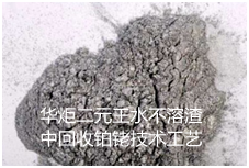 华炬新产品研究所技术咨询委员会科研人员现推荐一项二元王水不溶渣中回收铂铑技术工艺方法,该技术与现有技术相比,将二元王水不溶渣经过与过氧化钡熔融后,将贵金属铂、铑氧化成可溶解的氧化物,用盐酸直接溶解,然后用氯化铵沉淀法分离铂和铑,用水合肼还原得铂,然后将含铑的滤液用亚硝酸钠溶液络合后用氯化铵沉淀法沉淀铑,转钠型得铑液,再用离子交换树脂去除贱金属,最后水合肼、氢气火焰还原得铑粉,铑粉纯度达到99.95%,这是一种贵金属资源二次回收利用和提纯方法,具有工艺简单,提纯周期短,操作方便,回收率高等优点,而且废气废物排放少,有利于保护环境,操作人员工作环境好,安全性好,对设备要求简单,现将该二元王水不溶渣中回收铂铑技术工艺方法及实例介绍如下供研究交流参考:(611511 325445)