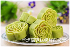 绿豆糕具体制作步骤包括绿豆泥制备、混合、搅拌、熟化、包装和灭菌等步骤步骤, 绿豆糕含水量高,尤其是豆沙内馅、果酱内陷等含水量可达20%左右,绿豆糕糕含水量高加上端午节时节外界空气湿度大,霉菌很容易生长繁殖,导致极易变质变质,因此绿豆糕保质期都较短。华炬新产品研究所技术咨询委员会科研人员针对绿豆糕易变质现推荐一项绿豆糕保鲜剂技术配方,该技术产品不仅可以可以抑制细菌尤其是霉菌的生长,延长货架期,还不影响绿豆糕的松软口感,而且还可以改善保水性和食品的组织结构,具有非常好的水分稳定性 。现将该绿豆糕保鲜剂技术配方介绍如下供研究交流参考:(211211 321456)