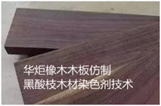 目前在木材染色领域中,常用的染料为酸性染料,用量占木材染色剂总用量的一半以上,处理温度高、耗能量大,而且酸性染料存在着色牢度差、均匀性差、不利于环保、有致癌作用等缺点。华炬新产品研究所技术咨询委员会科研人员现推荐一项橡木木板仿制黑酸枝木材染色剂技术配方,该技术产品按照木材单板的化学组成、板材表面的物理、化学特性,以及天然珍贵硬阔叶材表面材色的色度学指标配置染色药剂,药剂溶液呈弱碱性。通过中高温水热处理,在均染和促染剂的作用下可以使染料在单板表面均匀分布,在渗透剂和扩散的作用下可以使染色剂均匀渗透到单板中,再通过固色处理使染料均匀的固着在单板上,从而实现单板的仿珍染色。在不影响单板的物理力学性能的前提下提高了单板的产品附加值,一定程度上可以替代天然珍贵木材来作为表面装饰材料。与木材的酸性染料染色方法相比,更环保,能耗低,产品性能好,社会效益和生态效益显著。该技术产品配方设计合理,技术性能良好,染色效果好,仿珍度高,消耗能量少,成本低。与目前现有的染色处理方法相比,能源消耗可减少20%以上,产品附加值可提高数倍。现将该橡木木板仿制黑酸枝木材染色剂技术配方介绍如下供研究交流参考:(271211 331247)