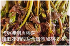 针对上述现有技术,华炬新产品研究所农业技术事业部科研人员现推荐一项腌制香椿芽降低亚硝酸盐含量添加剂技术,该技术产品的应用既能降低香椿芽中亚硝酸盐含量,又能使维生素C的破坏降到最低,一举两得,该技术产品配方简单,应用方便,价格低廉,符合食品卫生标准,不仅高效安全的降低亚硝酸盐含量,而且绿色环保,现将该腌制香椿芽降低亚硝酸盐含量添加剂技术介绍如下: