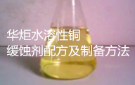 华炬新产品研究所技术咨询委员会科研人员现推荐一项一种水溶性铜缓蚀剂配方及制备方法,该技术的目的在于提供一种具有工艺流程简单、生产成本低,质量稳定,能够与水以任意比例相溶,对铜、铝或铜铝合金材质有 良好的缓蚀作用,可与有机磷及共聚物复配使用。铜缓蚀效 率高的复合铜缓蚀剂的制备方法,现将该一种水溶性铜缓蚀剂配方及制备方法及实施例介绍如下供研究交流参考:(611341 475439)