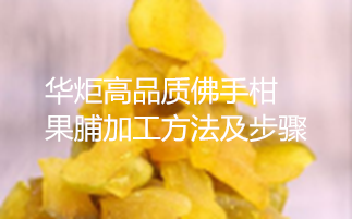 华炬新产品研究所技术咨询委员会科研人员现推荐一项一种高品质佛手柑果脯加工方法及步骤,该技术的有益效果是:1、该技术采用清洗、预处理、烘烤、渗糖、干燥的工序来制作佛手柑果脯,并对各个工序的具体操作进行优化,从而能使本发明的果脯具有外观品质好,营养保存好,存放时间久,不容易返砂的优良品质。首先,传统的方法为采摘佛手柑后再进行清洗,这样会使果实从蒂部吸收水分造成品质下降;该技术采用先清洗后采摘的方式,能保证果实营养品质优良。其次,在预处理的过程中,该技术先用高温蒸汽进行处理,起到灭酶的作用,防止表皮的褐变,然后用合适的护色剂对佛手进行处理,有效防止果肉的氧化褐变,保证色泽的美观;又经过氯化钙硬化处理后,使果实不易塌陷和皱缩,保证其外形的美观;该技术在渗糖前对佛手柑进行烘烤,除去一部分水分,可以使后续渗糖的效率提高;在渗糖时,采用超声波渗糖的方式,不仅能使渗糖更快,还能使佛手柑的含糖量更高,通过超声波渗糖后,还能改进细胞膜的组织的通透性,对后续的真空渗糖也有帮助。另外采用氯化钙进行硬化处理后,再使用超声波渗糖,还能产生协同作用,通过协同作用使渗糖更快更好。因此,该技术通过上述几个步骤的改进和共同作用,能明显提升佛手柑的外观品质,营养品质,且由于处理得当,能储存18个月以上也没有出现返砂现象。2、该技术还对渗糖过程所用的渗糖液进行改进,该渗糖液采用香橼、刀豆、牛奶莓根、蜜枣、生姜按一定比例配合提取制作而成,其中香橼能理上焦之气,具有止呕逆,促进食,健脾胃的功效;刀豆温中下气,益肾补元的功效,能治虚寒呃逆,呕吐,腹胀,肾虚腰痛,痰喘。牛奶莓根具有清热解毒,开胃、利水的功效,对食欲不振具有疗效;生姜具有发表,散寒,止呕,开痰的功效;治感冒风寒,呕吐,痰饮,喘咳,胀满,泄泻。蜜枣为一种蜜饯,有补血、健胃、益肺、调胃之功能,将蜜枣制作成冻干粉后使用,能使佛手柑果脯具有淡淡的枣香味。上述5味原料与佛手一起,共同作用,通过健脾、开胃、调理肠胃、清热除湿的药理功能作用,起到更好的调理脾胃的保健功能效果,对食欲不振的患者有很好的改善作用,现将该一种高品质佛手柑果脯加工方法及步骤及实施例介绍如下供研究交流参考:(241441 475462)