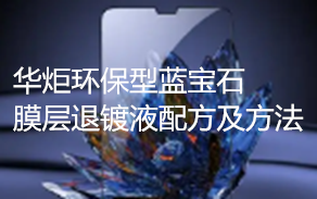 华炬新产品研究所技术咨询委员会科研人员现推荐一项一种环保型蓝宝石膜层退镀液配方及方法,该技术技术相比有如下优势: 1)、退镀液中的无机助剂对膜层具有较强的渗透性与络合效果,使产品的退镀能力更强更彻底,只需浸泡或者喷淋接触即可达到很好的退镀效果; 2)、只需普通的加热设备,退镀均匀,对蓝宝石基片的尺寸不会有影响,也不会在工件上产生点蚀; 3)、退镀时间短,节省加工时间,退镀液使用后易处理,对环境不造成影响,现将该一种环保型蓝宝石膜层退镀液配方及方法及技术方案实施例介绍如下供研究交流参考:(611571 331566)