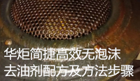 华炬新产品研究所技术咨询委员会科研人员现推荐一项一种简捷高效无泡沫去油剂配方及方法步骤,该技术有益效果是:提供的一种无泡沫去油粉,能高效性除油,且效果显著、制造去油粉,原料简单易购得,制造工艺简单、经济价廉、无残留、环保、生产和使用都安全,节能、节水、省人工,现将该一种简捷高效无泡沫去油剂配方及方法步骤及技术方案实施例介绍如下供研究交流参考:(571211 261465)