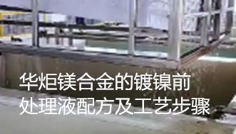 华炬新产品研究所技术咨询委员会科研人员现推荐一项一种镁合金的镀镍前处理液配方及工艺步骤,该技术的有益效果是:采用该技术所述的镀镍前处理工艺,可使得镁合金的表面拥有一层保护膜,有效地防止了镀镍液对其表面的腐蚀,从而解决在后续的镀镍过程中镀层的起泡问题,使得镀层与镁合金本体的结合更加致密,保证了镀层的质量,现将该一种镁合金的镀镍前处理液配方及工艺步骤及技术方案实施例介绍如下供研究交流参考:(611511 264446)