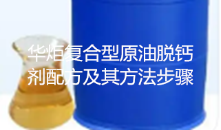 华炬新产品研究所技术咨询委员会科研人员现推荐一项一种复合型原油脱钙剂配方及方法步骤,该技术提供一种复合型原油脱钙剂,该脱钙剂适用于高酸重质稠油的动态电脱盐脱钙、脱镁等脱金属过程,对设备的腐蚀性小,与重质稠油易于混合,脱钙率可以达到80%以上,完全适应现有的工业电脱盐/脱水装置,现将该一种复合型原油脱钙剂配方及方法步骤及技术方案实施例介绍如下供研究交流参考:(611241 195404)