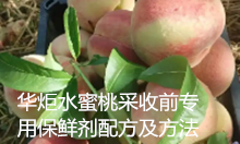 华炬新产品研究所技术咨询委员会科研人员现推荐一项一种水蜜桃采收前专用保鲜剂配方及方法,该技术具有如下优点和有益效果: (1) 该技术突破现有技术中水蜜桃在采收后保鲜技术惯例,采用采摘前保鲜的方式,这样有效地避免了采摘后接触含水保鲜剂,导致果皮表面水分含量高、容易滋生微生物导致腐败的发生,采用该技术的方法,在采收前进行喷雾,使得保鲜剂能够均匀地分布在水蜜桃的表面,形成有效的保护。在装袋、保鲜期间,水蜜桃的表面始终保持干燥,减少了微生物的滋生,另外,采用该技术的方法,采摘后直接套袋,不需要额外的进行保鲜操作,减少了后续操作流程中水蜜桃的磕碰产生的组织伤害,也利于果实的保存。 (2) 该技术选用天然原料,不包括化学合成的物质,天然、健康,符合现代社会健康发展的需求。其中包括多种中药成分提取的中药提取液,其都是使用安全的中药所提取的有效成分,在采摘前多次喷洒可以渗透到水蜜桃皮质的浅层,有利于形成防腐保鲜层,避免表层微生物向内层的渗透滋生,该技术选用的氯化钙中的钙离子可以与果胶作用,形成交联网状结构成分,对于果皮的气孔大小和皮质的硬度由一定的影响,其可以使得水蜜桃的皮质结实,对于有效抵抗微生物腐败和挤压损伤具有一定的效果。(3) 该技术中壳聚糖和甘油的配合使用,能够在水蜜桃的表面形成保护膜,与此同时,其还能使得水蜜桃的表面更加的光滑,具有一定的光泽度,提升其外观品质。总而言之,该技术的水蜜桃保鲜剂是一种安全、高效的保鲜剂,其突破常规的保鲜方法,旨在提升水蜜桃采摘前的抗腐败能力,能够有效的延长水蜜桃的保鲜期,使得水蜜桃的保鲜期由一般的20天左右延长至35天左右,最长的可达40天,效果十分显著,现将该一种水蜜桃采收前专用保鲜剂配方及方法及技术方案及实施例介绍如下供研究交流参考:(241241 221418)