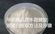 华炬科技新产品研究所技术咨询委员会科研人员现推荐一项一种高品质牛跟腱胶原蛋白提取方法及步骤,该技术的有益技术效果:牛跟腱来源的胶原较皮肤来源的胶原不容易污染,更清洁,且提取率更高;胶原分子的主体部分是杆状三螺旋结构,能高度耐受胃蛋白酶的作用,但分子两端的球蛋白结构能被胃蛋白酶选择性水解。在pH值为2.5~3.0时,胃蛋白酶能顺利地将末端肽从完整的胶原主体分子上切割下来,这样交联的胶原巨型分子结构受到破坏,近似完整的胶原分子便能够从胶原纤维中分离出来而被提取,所以酶解法提取胶原的得率最高;运用高效液相色谱分离纯化I型胶原蛋白的优点是显而易见的,它有着比普通柱层析更高的柱效,灵敏度高,分离条件温和,在分离检测过程中一般没有样品损坏,易于样品回收,而且操作自动化;利用酶解和高效液相色谱制备相结合的方法可以从牦牛跟腱中分离纯化I型胶原蛋白,该方法具有高效性,高选择性和易放大性,现将该一种高品质牛跟腱胶原蛋白提取方法及步骤及技术方案及实施例介绍如下供研究交流参考:(311241 355556)