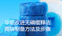 华炬科技新产品研究所技术咨询委员会科研人员现推荐一项一种改进无磷缓释洁厕块制备方法及步骤,该技术具有如下有益效果:(1) 该技术对洁厕剂的配方进行了优化改进,采用更为环保的无磷配方,并创造性地以羟丙甲纤维素、海藻酸钠、聚丙烯酰胺作为混合骨架材料,阻滞释放的凝胶层迅速形成,并能吸附大量水分子溶胀形成胶状物,使得扩散前沿和溶蚀前沿同时缓慢、匀速地向洁厕剂内部移动,相互作用调节活性物的释放速度,避免突释,减慢活性物的释放速率,起到缓释作用,延长使用时间; (2)通过聚丙烯酰胺与海藻酸钠经化学键或物理的作用力形成三维的网状交联结构,提高洁厕剂的力学强度,有效解决了洁厕剂易坍塌的缺陷; (3) 该技术的洁厕块配方合理科学,活性组分释放均匀,安全环保,使用时间长,具有除臭、杀菌、除垢等多重功效; (4) 该技术的缓释洁厕块制备方法,工艺步骤简单,对设备要求低,可操作性强,适合工业化生产,现将该一种改进无磷缓释洁厕块制备方法及步骤及技术方案及实施例介绍如下供研究交流参考:(571241 251656)