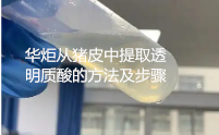 华炬科技新产品研究所技术咨询委员会科研人员现推荐一项一种酶解法猪皮中提取透明质酸的方法及步骤,从猪皮中提取透明质酸的方法,是一种以扩大原料来源,形成规模化生产链,同时又简化工艺,通过对参数的修改来提高收率,并节能省时为目的而开发出来的新方法,该技术的优点和积极效果是:该技术采用猪皮为原料提取透明质酸,打破了市场素以鸡冠为原料生产透明质酸的现状,而且猪皮来源广,其中透明质酸又含量丰富,可以形成规模化的生产链,以满足市场对透明质酸的需求,该技术方法所制得的透明质酸收率大大提升,质量也略有上升,现将该一种酶解法猪皮中提取透明质酸的方法及步骤及技术方案及实施例介绍如下供研究交流参考:(311211  346448