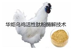 多肽是涉及生物体内各种细胞功能的生物活性物质。科学发现,几乎所有细胞都受多肽调节,如:细胞分化、神经激素递质调节、免疫调节等均与活性多肽密切相关,它具有调节机体生理功能和为机体提供营养的双重功效。乌骨鸡的营养价值远高于普通鸡,乌骨鸡多肽具有补肝、益气血、养阴清热、调经健脾补血、补贤固精、抗衰老、抗疲劳、抗糖基化促骨细胞增殖等功效,并且乌骨鸡多肽具有水溶性好、营养价值高、服用方便、口感好、高效吸收等特点,是生产可降解小肽片的理想原料。