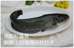 华炬新产品研究所技术咨询委员会科研人员现推荐一项鲶鱼骨酶解法制备降压肽技术工艺方法,该技术所制备的降血压肽是鲶鱼骨经生物酶水解而得,属于天然提取物,具有天然、无毒、无污染、无残留、无副作用、高效等特点,是一种新型的绿色降血压药物;采用该技术方法制备的降血压肽,具有分子量小、易吸收、不产生耐药性,ACE抑制率达88%以上,高于降血压药尼莫地平和硝苯地平的ACE抑制率;所采用的原料来源广泛,价格低廉,经过本发明的技术转化可以有效的提高鲶鱼骨副产物的附加值,减少了直接排放的污染;产品可以作为药品、保健食品、食品、食品添加剂、药物增效剂等,工艺科学合理,操作简单,具有较强的工业实施性,现将该鲶鱼骨酶解法制备降压肽技术工艺方法实例介绍如下供研究参考:(341241 521645)