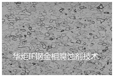华炬新产品研究所技术咨询委员会科研人员现推荐一项IF钢金相腐蚀剂技术配方及方法,该技术产品该金相腐蚀剂腐蚀时间短,腐蚀步骤简单,容易掌控,操作方便,经过该腐蚀剂腐蚀后,能够得到清晰的金相组织,更好地方便广大科研工作者,现将该IF钢金相腐蚀剂技术配方及方法实例介绍如下供研究参考:(841141 221163)