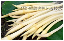 鲜藕尖由于采摘上市季节性强,时间短,从采摘地到市场运输保存难,非藕尖生产地的人很难吃得到新鲜藕尖,现市场上销售的藕尖除了藕尖生产地是新鲜藕尖直接销售外,其余地方销售的藕尖大多是采用先腌制贮存,后通过高盐进行加工,改变了鲜藕尖的新鲜、鲜亮、脆嫩的风味,特别是失去了鲜藕尖的光泽,鲜藕尖变黑、变暗,极大的影响了鲜藕尖的销售。华炬新产品研究所技术咨询委员会科研人员鲜推荐一项鲜藕尖护色液技术配方用于保护鲜藕尖的本来颜色,该技术产品配方科学,原料来源广,使用方法简单、护色效果好,价格低廉,便于用户接受使用,现将该鲜藕尖护色液技术配方介绍如下供研究参考:(211371 421687)