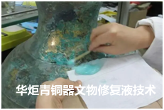 华炬新产品研究所技术咨询委员会科研人员现推荐一项青铜器文物修复液技术配方及修复方法,该技术产品修复液是以咪唑离子液体为介质的过渡金属催化反应,与磷酸液组合,在很大范围内对文物上的杂原配合物及有机物溶解,从而达到还原文物的目的。修复液具有较强渗透能力和反应活性,在较小酸性比(10-12%)和较低温条件下,也能清除铜锈并能将其转换为强度高的物质,明显提高了青铜器强度,增强了青铜器的抗压,撕裂度、耐破度、抗张强度提高,能有效地修复锈蚀矿化的青铜器文物,使之整形复原,现将该青铜器文物修复液技术配方及修复方法及实例介绍如下供研究参考:(611341 381451)