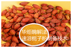华炬科技新产品研究所技术咨询委员会科研人员现推荐一项酶解法速溶栀子粉制备技术方法,该技术利用连续逆流、超声、酶解等现代生物提取技术,实现低温高效提取,制得的速溶栀子粉的营养成分更加接近原料栀子,蛋白质含量达到10.5%,且维生素A、蛋白质、脂肪、有机酸等营业成分得到显著提高,K、Ca等有益微量元素显著提高,As、Pb等有害微量元素显著减少,同时药效成分西红花苷、栀子苷、绿原酸等药效成分得到显著提高;同时采用超滤技术进行纯化处理,使制成的速溶茶粉既速溶于热水,又速溶于冷水,且溶液呈澄清明亮,无杂质,改善了人们服用的口感,现将该酶解法速溶栀子粉制备技术方法实例介绍如下供研究参考:(441221 521585)