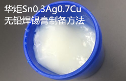 华炬新产品研究所技术咨询委员会科研人员现推荐一项Sn0.3Ag0.7Cu无铅焊锡膏制备方法,该技术有益效果是, Sn0.3Ag0.7Cu无铅焊锡膏,触变性优异,印刷性能良好;粘性好,电子元器件的粘接力好;抗塌落性高,焊后无桥连;焊接性能好,焊点饱满,铺展率高;焊后残留无腐蚀性,且均匀覆盖在焊点表面,对焊点起到良好的物理、化学保护作用(防潮、耐腐蚀、电气绝缘性好),现将该Sn0.3Ag0.7Cu无铅焊锡膏制备方法及实施例介绍如下供研究参考:(841131 531445)