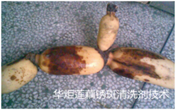 华炬新产品研究所技术咨询委员会科技人员针对现有的莲藕在其种植的过程中,在莲藕的外表面留有很多的锈斑问题,影响了其市场价值和保质期,现推荐一种莲藕锈斑清洗剂技术配方,该技术产品能快速的去除莲藕表面的锈斑,使得莲藕的表面光滑、干净,更具有市场价值,莲藕的保质期更长。现将莲藕锈斑清洗剂技术配方介绍如下供研究参考:(211371 421216)
